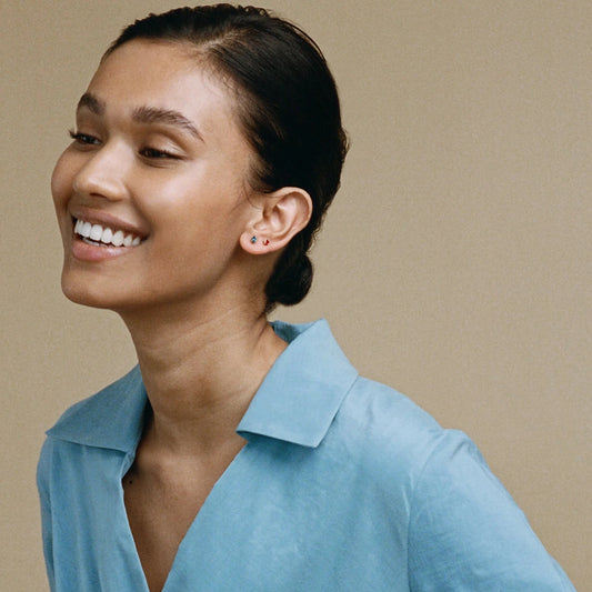 Single signature grigri stud earring in 18 ct. gold