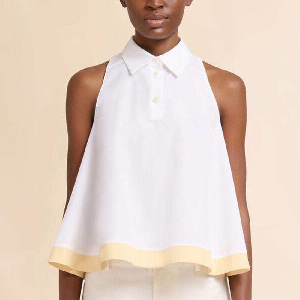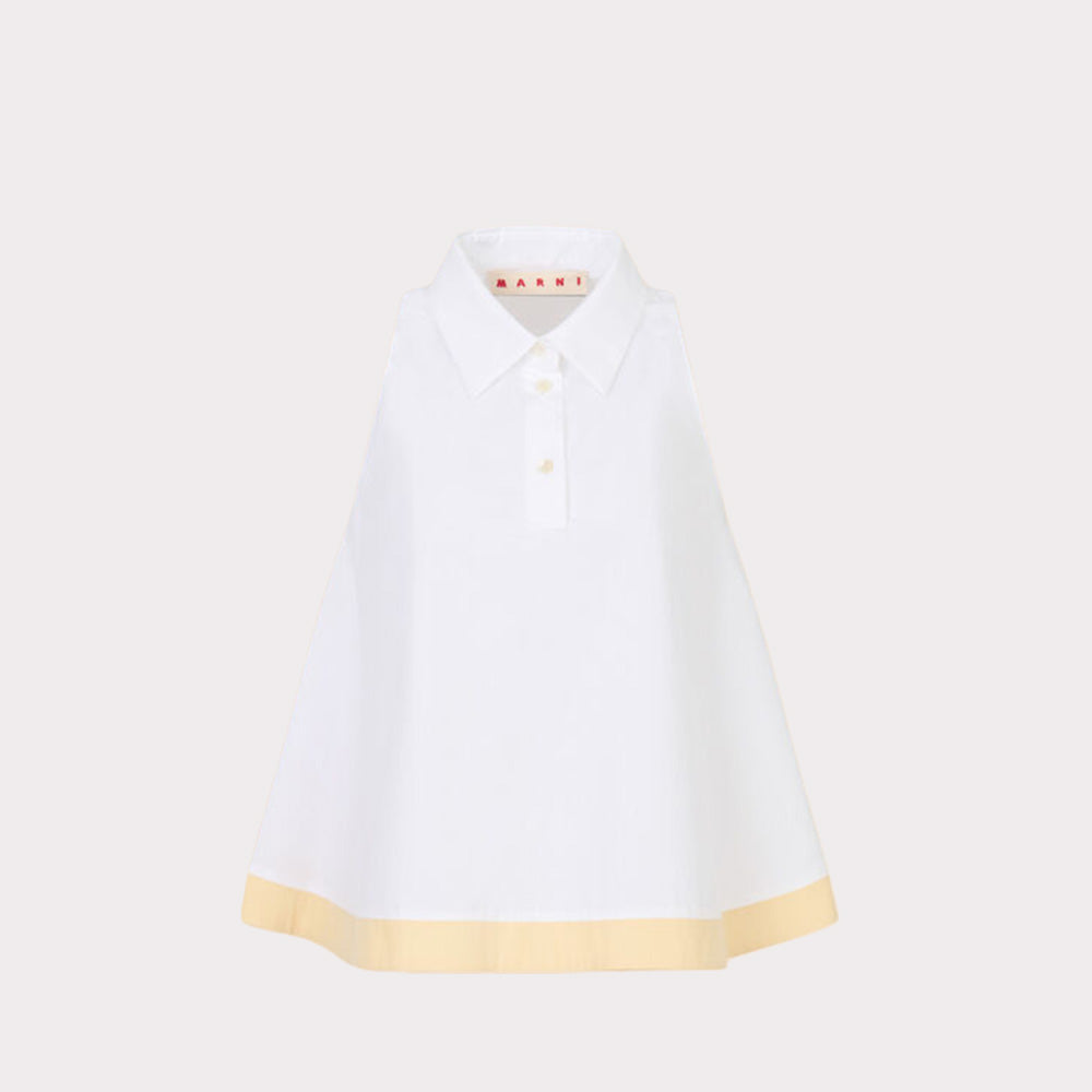 Deze mouwloze blouse van Marni is een moderne benadering van de klassieke poplin blouse, waarin rustige proporties en ingetogen details samenkomen. De cleane snit en zuivere lijnen geven een ingetogen uitstraling. De uitlopende pasvorm maken het geheel comfortabel draagbaar.